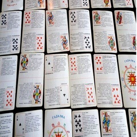 Карты расклада – 10 червей перевернутая, 9 треф, 7 треф, 10 бубен перевернутая, 10 треф, Валет пик перевернутый.