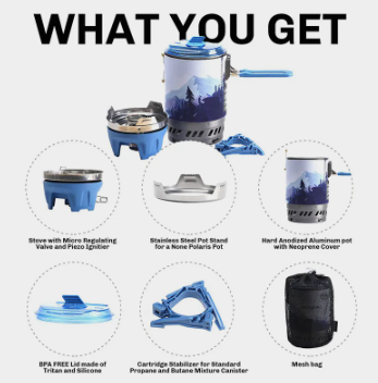 1 - Система приготовления пищи Первым открывает нашу подборку - многофункциональный и полезный товар, представляющий из себя систему для приготовления пищи. Такая вещь будет полезная в первую очередь поклонникам путешествий, поездок на рыбалку, охоту или просто любителям походов. Система приготовления пищи изготовлена из легких и прочных материалов, имеет удобную подставку, хорошо стоит на земле и надежно держит установленную сверху посуду. Также есть возможность установки баллонов с газом разной емкости, а из несомненных плюсов - горелка сжигает баллоны до конца, в отличии от своих конкурентов, которые могут оставить какую-то часть газа неизрасходованной.