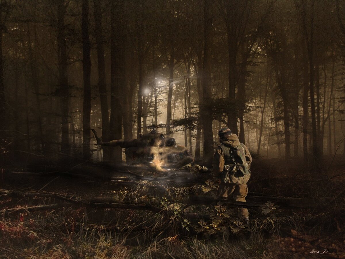 Убедившись, что мою ,,маскировку" не сдует, я осмотрелся вокруг. Ничего, всё тот же лес. Шагая по нему, мы, то и дело, слышали вой неизвестных тварей. Уже на подходе к посту, который служит единственным выходом из этого богом забытого места, я всунул в руку Вики свой пистолет. Глядя в бинокль, мне не получилось увидеть никого на посту. Странно, должно быть несколько бойцов. Подождать? Время щас не на меня играет, 2 часа осталось у батареи, если не потороплюсь, стану таким же болванчиком....