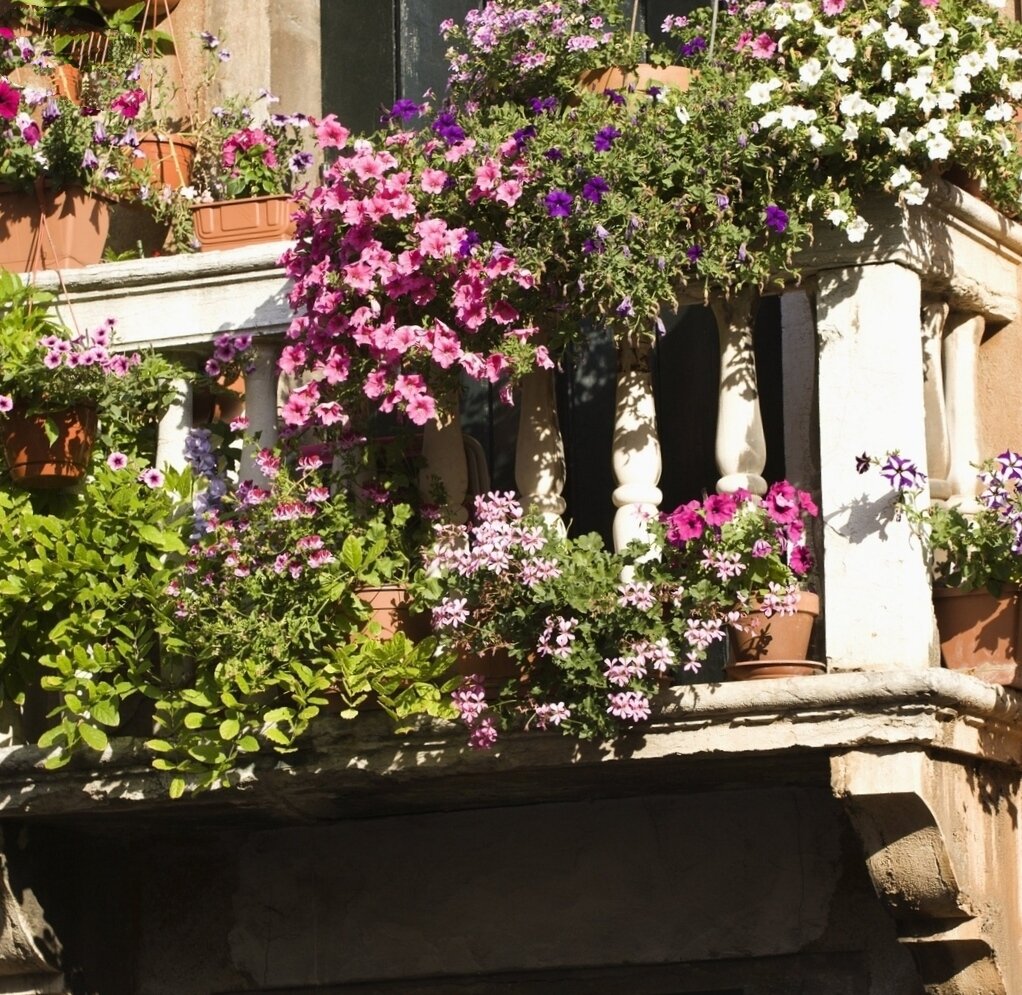 Даже если у вас нет загородного участка, это не повод отказываться от выращивания уличных цветов, тем более если у вас есть балкон. Давайте вместе подберем подходящие растения и подумаем как обустроить мини-клумбу, чтобы она и выглядела привлекательно, и не требовала от вас больших усилий. Мы начнём, а вы продолжите. Что учесть при озеленении балкона Есть несколько факторов, которые вы должны продумать заранее. Во-первых, это имеющаяся в вашем распоряжении площадь. От этого будет зависеть количество и размеры растений. Во-вторых, наличие остекления – это влияет на выбор культур по их устойчивости к внешним факторам. В-третьих, ваши возможности по уходу. Если вам особо некогда заниматься цветами, стоит выбрать неприхотливые варианты. Если вы часто уезжаете, надо позаботиться о поливе. В-четвертых, ознакомиться с характеристиками выбранных растений и с их учетом приобрести горшки и грунт. В-пятых, для вьющихся и ампельных растений необходимо предусмотреть опору. Варианты раз
