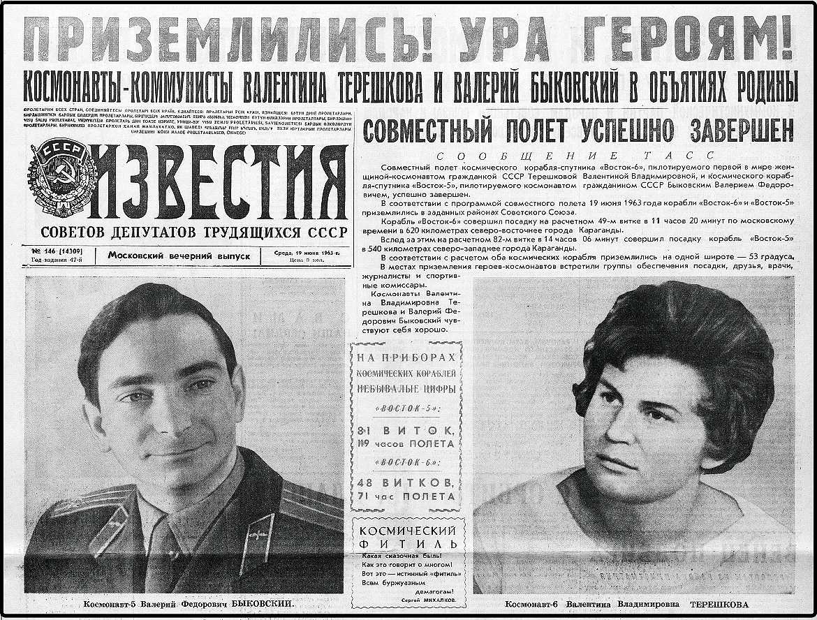 - Терешкова, Быковский и я вернулись вчера из Польши. В Лодзи и городах Силезии было много чудесных встреч, они напомнили нам встречи в Чехословакии и Болгарии.