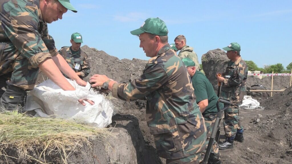 В Брасовском районе Брянской области продолжается военно-патриотическая акция «Вахта памяти-2023». Еще в конце апреля «Брянская Губерния» сообщала, что поисковики подняли из земли в селе Брасово в пойме реки Зевра останки 108 мирных жителей, в том числе предположительно 26 детей в возрасте до 10 лет. Тогда было высказано предположение, что это только начало масштабной работы. Место для поиска подсказали жители еще осенью прошлого года. И тогда в насыпи были найдены останки 103 человек, 27 из которых оказались дети. На раскопе работали представители СК РФ. В ходе раскопок в этом году к сегодняшнему дню поисковики обнаружили останки более 177 мирных жителей, погибших во время Великой Отечественной войны: стариков, женщин и детей. Об этом сообщает корреспондент «Брянской Губернии». Эксгумационные работы продлятся до 21 июня, после чего останки торжественно перезахоронят в селе Холмецкий Хутор на территории нового Мемориального комплекса. Церемония его открытия и перезахоронения состоится