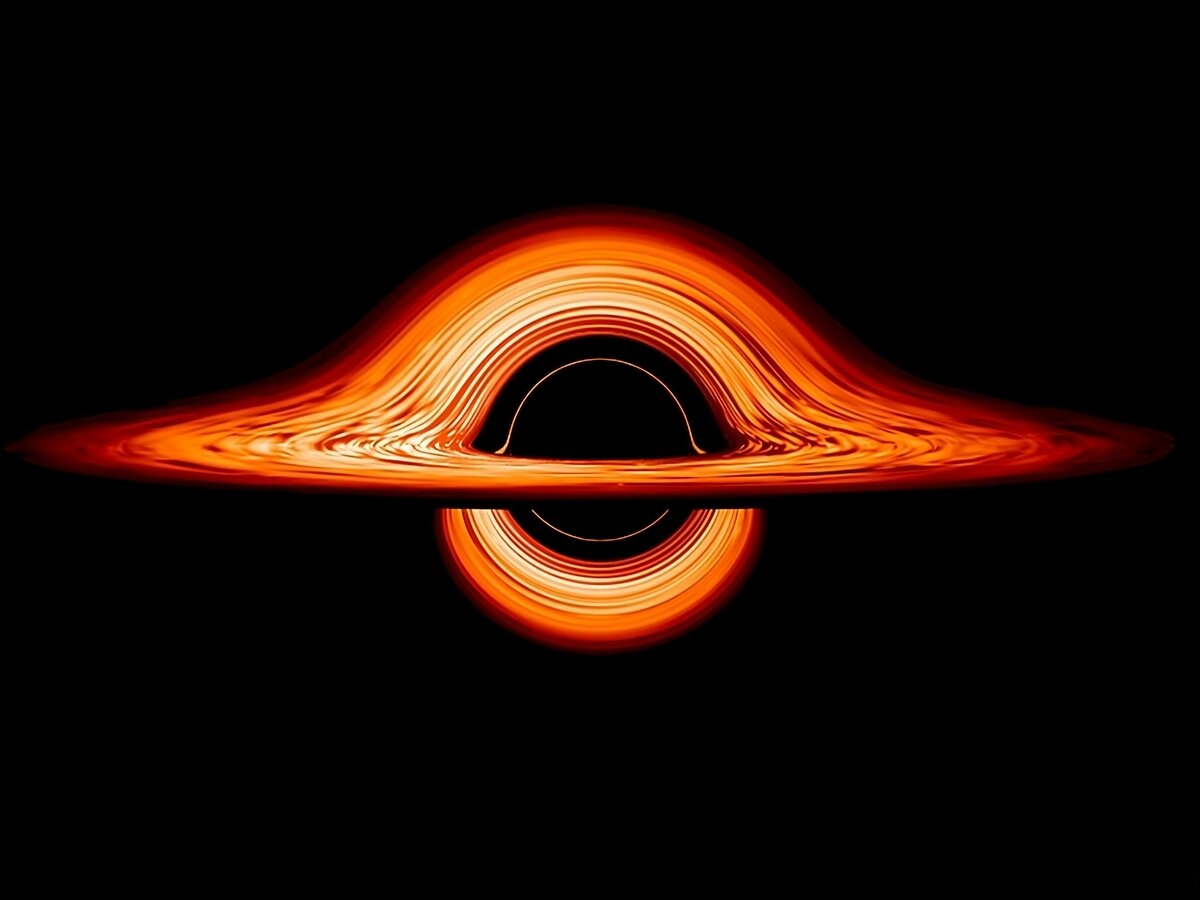 Кроме того, мы увидим, как цвета объектов меняются. Это из-за того, что свет теряет энергию при движении в сильном гравитационном поле. Это явление называется гравитационным красным смещением. Чем ближе к чёрной дыре, тем больше свет смещается в красную сторону спектра.