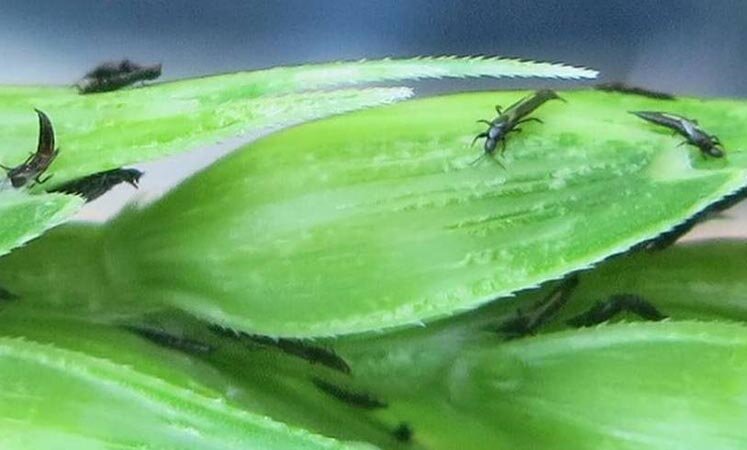 Обработка была проведена в фазу флаговый лист – начало колошения, концентрация рабочего раствора 2% (2 л на 100 л рабочего раствора). Результат применения ПРК «Белый Жемчуг Универсальный ФитоЗащита» на опыте: высокая эффективность (95%) в защите от сосущих вредителей (трипсы), что превышает эффективность