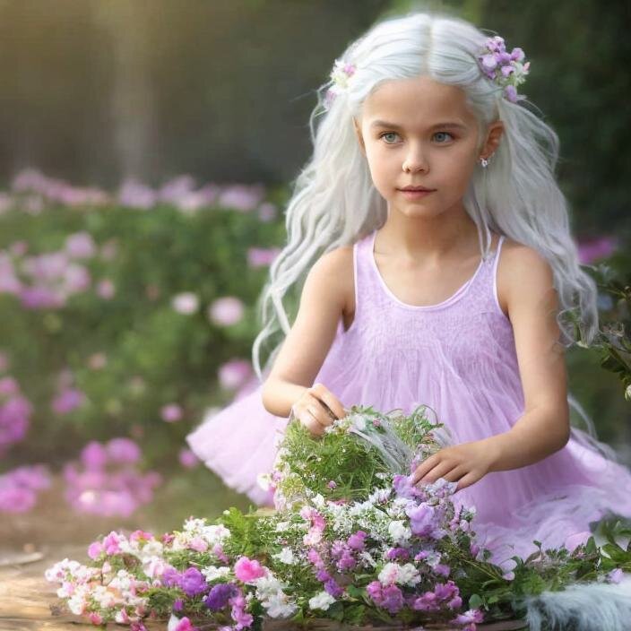 В ответ я услыхал нежный серебристый смешок, доносившийся из глубины поля. Я ринулся туда и, к моему изумлению, обнаружил сидящую прямо на земле девчонку лет пяти-шести, на коленях которой лежала охапка полевых цветов. Девочка быстро перебирала их своими тоненькими ручками, ловко вплетая отобранное в венок.