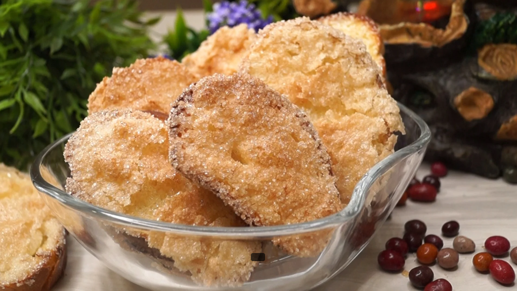 Сахар – для посыпки СПОСОБ ПРИГОТОВЛЕНИЯ Батон нарежем на ломтики Яйца разделим на белок и желток, желток нам не понадобится. Белок хорошо взбиваем вилкой. Берем ломтик батона, опускаем одной стороной в белок, затем обмакиваем в сахар. Ставим в разогретую духовку и выпекаем при 180 градусах 10-15 минут. Сладкие гренки готовы, подаем их к чаю. Такой рецепт выручит когда очень хочется вкусненького, а времени нет. Сверху они получаются с хрустящей корочкой, а внутри мягкие. Если Вам понравился рецепт - поставьте 👍 или напишите комментарий. Ваши отзывы - самая лучшая награда для меня 😘 😘 😘 Друзья, огромное Вам спасибо, за положительные отзывы, за доверие, за комментарии, очень рада что готовите вместе со мной!!! Подробности и детали приготовления Вы можете посмотреть в моем