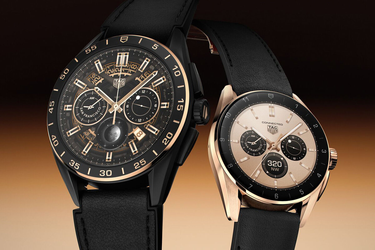 Часы последнего поколения Connected, представляющие собой сочетание изысканности, роскоши и элегантности, практичны для повседневной носки и дополнены совершенно новым дизайном, достаточно изысканным для более торжественных случаев. 42-миллиметровое издание Golden Bright Edition знаменует собой первую попытку TAG Heuer представить часы с полностью розово-золотистым PVD-корпусом для серии Connected. Часы стоимостью 2250 швейцарских франков (около 2492 долларов США) сочетаются с черным ремешком из телячьей кожи со спортивной красной подкладкой и раскладной застежкой из розово-золотистой PVD-стали, повторяющей оттенки и материал корпуса часов. 45-миллиметровое издание Bright Black Edition, заключенное в черное дополнение и титановый корпус с пескоструйной обработкой, продается по цене 2700 швейцарских франков (примерно 2 990 долларов США). Циферблат часов со слегка подчеркнутыми розово-золотыми оттенками, а прилагаемый к нему черный ремешок из двух материалов придает им элегантную привлек