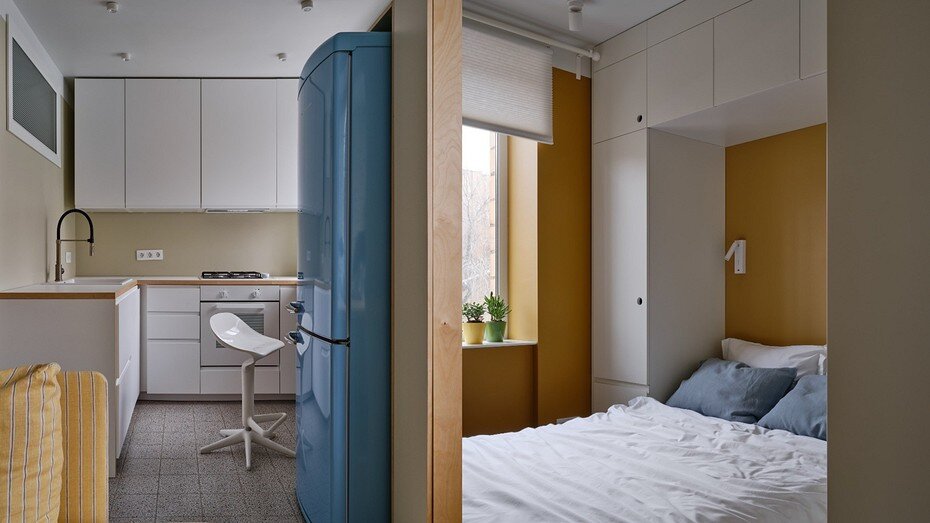 Дизайнер превратила типовую однушку почти в двушку, сделав перепланировку. Здесь много систем хранения и есть все для комфортной жизни.