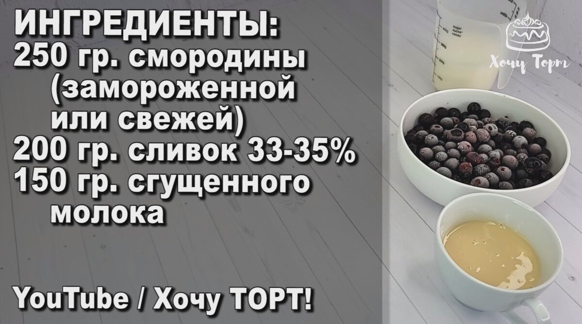 💖 Просто переходите и смотрите, сколько угодно!: ✨ Я всегда на связи в своём тёплом Telegram-канале — заглядывайте, там уютно и вкусно: 📢 Присоединяйтесь 👉 https://t.me/hochutort ❤️ ▃▃▃▃▃▃▃▃▃▃▃▃▃▃▃▃▃▃▃▃▃▃ 250 гр. смородины (замороженная или свежая) 200 гр. сливок 33-35% 150 гр. сгущенного молока Подготовим все необходимые ингредиенты. Черную смородину можно брать как замороженную, так и свежую. У меня замороженная смородина, я её предварительно разморозила. Размороженную смородину пробиваем погружным блендером. Если у вас смо