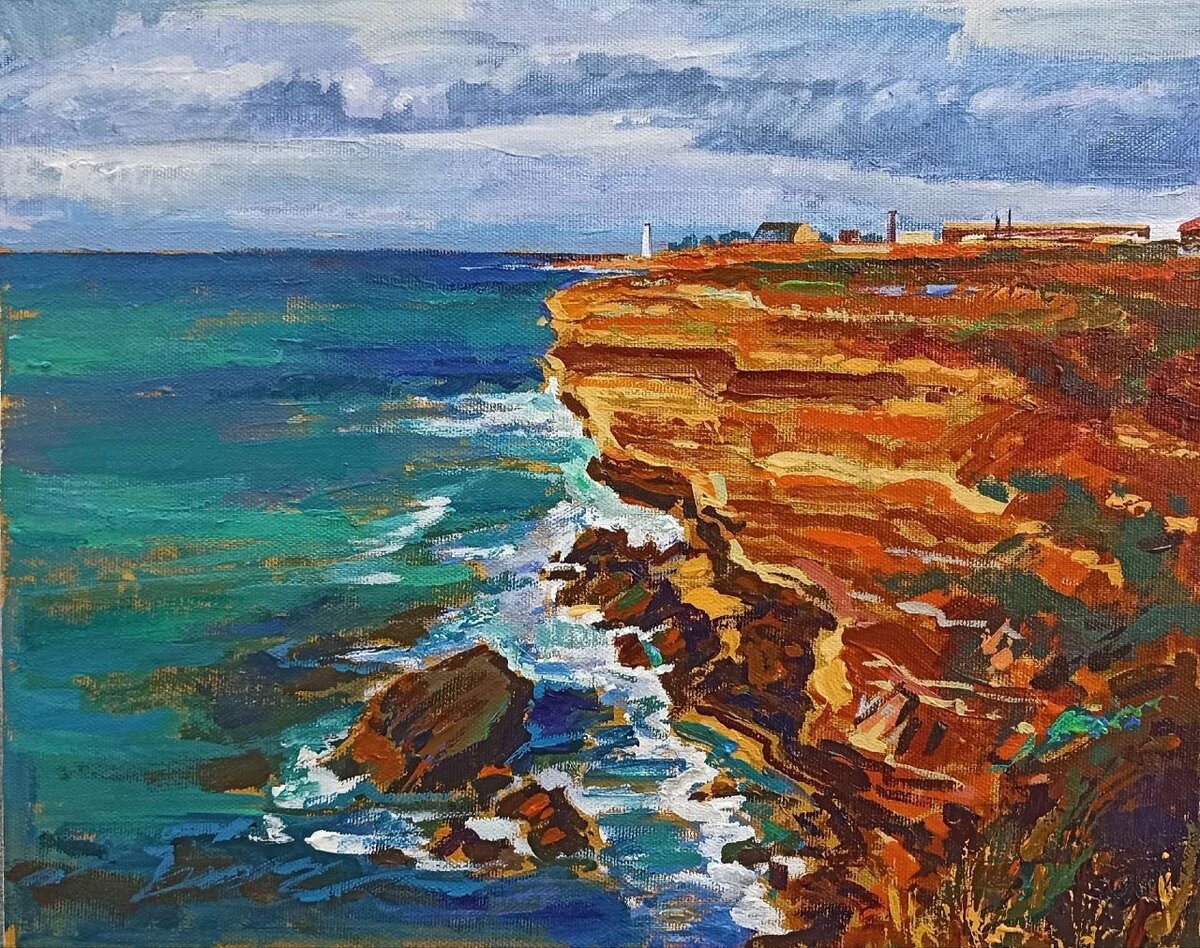 При написании этой картины художник работал акриловыми красками VISTA-ARTISTA. Ему удалось живо изобразить бушующее море, бьющееся о неприступные скалы. Получилось очень динамично!