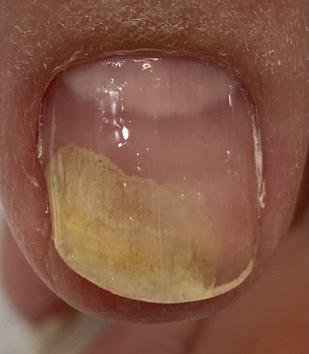 Пустота на больших пальцах ног, называется онихолизис. Распространенная причина возникновения пустоты под ногтем, это обувь или не подстриженные вовремя ногти. Если обувь Вашего размера, то это не значит, что не будет давить. Крепкие ногти или ногти покрытые гелем, при отрастании упираются в обувь, при ходьбе происходит давление на ногтевую пластину, тем самым делая микронадрыв ногтя от ногтевого ложа, даже если не почувствовали. Достаточно, одного раза прогуляться, намять ногти в обуви, чтобы образовалась пустота. Что в таком случае делать? Капать противогрибковым средствами, в качестве профилактики, можно, но это не избавляет от пустоты. Если пустота образовалась от обуви, первым делом подстричь ногти или сменить обувь, если дело не в длине ногтей. Хорошо бы сдать анализ на наличие грибка, чтобы избежать негативных последствий. Как избавиться от пустот? При пустотах, помогает средство для ногтей с экстрактом монарды, основные свойства антибактериальные, противовоспалительные,