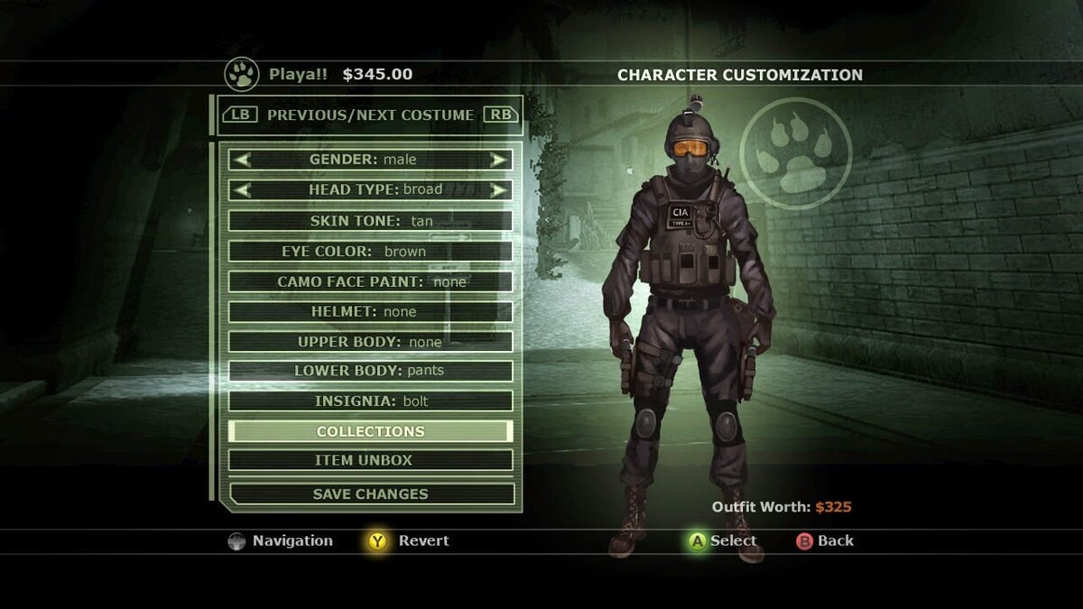 В игре была детальная настройка персонажа. Можно выбрать желаемый скин, после чего детально кастомизировать его: выбрать пол, форму головы, цвет кожи и глаз, одежду и аксессуары. Все вещи продавались за внутриигровую валюту, так как на консолях нет торговой площадки.