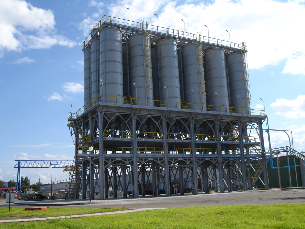 Сыпучие материалы поступают в приемные бункера, а затем транспортируются в силосы по трубопроводу и загрузочному коллектору. Система позволяет адресно направлять сыпучие материалы в выбранный силос, а также перекачивать их из силоса в силос. Количество силосов может быть изменено по желанию Заказчика.