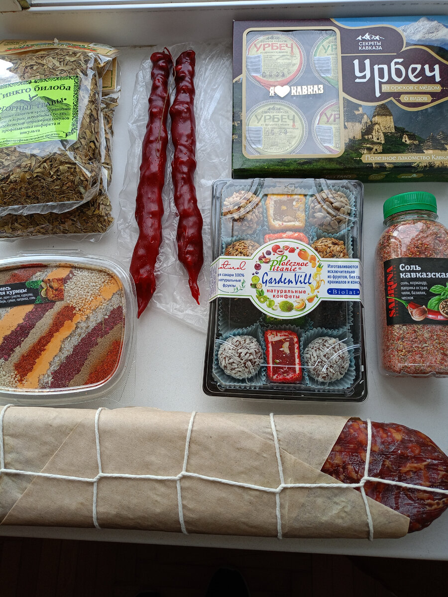 С Центрального рынка с ценами обзор Горные травы 50г 100₽ Смесь для курицы 100 г 130₽ Чурчхела с грецким орехом 1 шт. 35₽ Соль грамм 200( вес не указан) 180₽ Урбеч с мёдом 6 шт по 30г 300₽ Натуральные конфеты без сахара и без крахмала 330г 200₽ Колбаса говяжья с трюфелем с/к. На вкус очень понравилась за 1,6 кг заплатила 1900₽ Помидоры по 120₽ Огурцы по 70₽ Черешня по 200₽ Колбаски Охотничьи по 600₽ Давно хотела прикупить себе что-нибудь от солнца, но всё мне не нравилось. Купила такую шапочку. 100% хлопок за 300₽. Буду ли носить- не знаю. Купила носки мужу. У него ноги мёрзнут. Шерсть100% за 300₽. Надеюсь, у вас всё хорошо. Берегите себя! До новых встреч на моём канале!