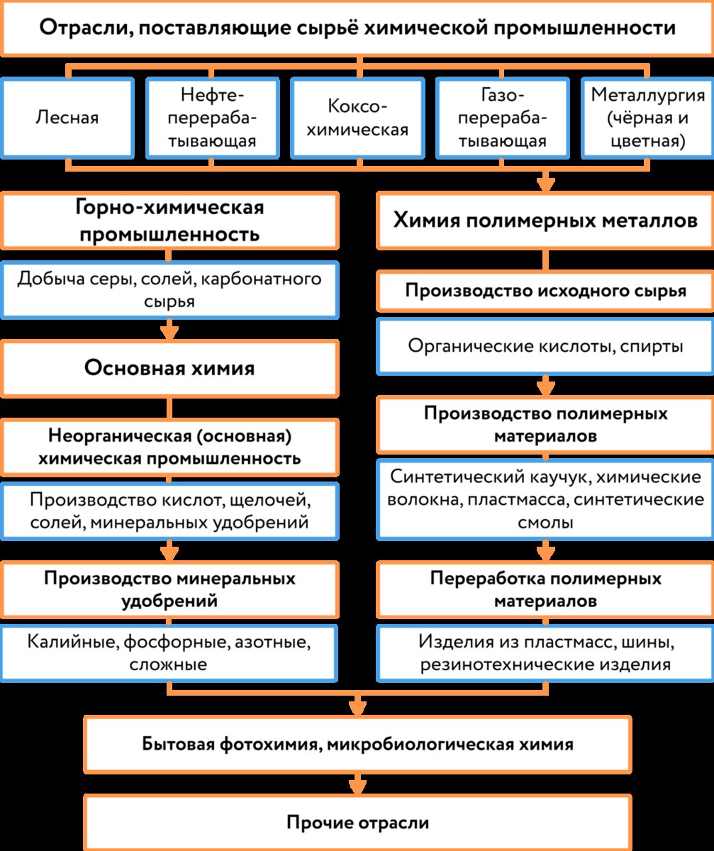 Химический комплекс представлен многочисленными производствами, которые можно условно объединить в несколько отраслей. Первое звено состоит из отраслей, разрабатывающих месторождения химического сырья – горно-химическая промышленность.