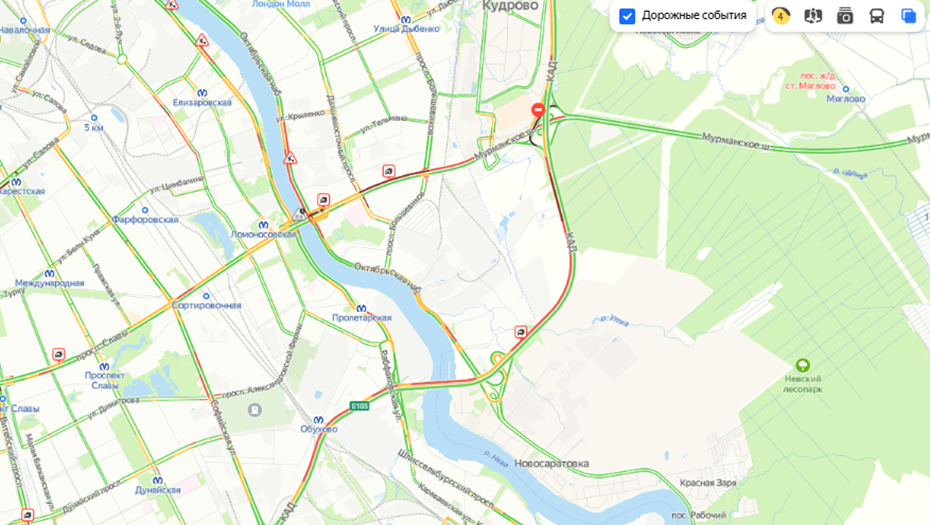 Перекрытия парализовали движение у вантового моста в Петербурге
