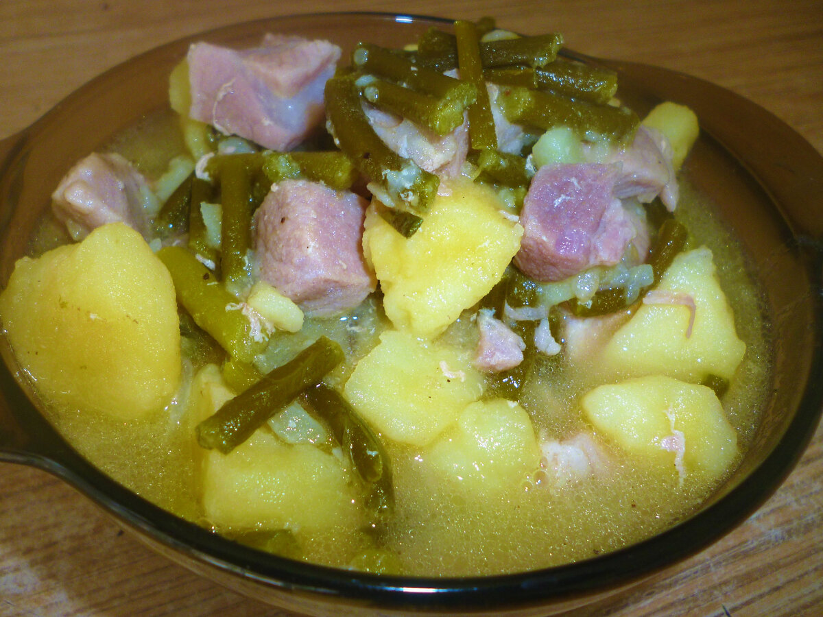 Когда готовлю такое жаркое, всегда думаю: "Как жаль, что мы его едим всего лишь раз в год!" Ведь чесночные стрелки бывают лишь летом! А это так вкусно! Чесночные стрелки частенько просто выбрасывают (я раньше и сама так делала), а зря! С ними можно приготовить много вкуснятины: пожарить омлет или добавить стрелки в жареную картошечку! А я предлагаю вам интересное первое блюдо. Казалось бы, ерунда, какие-то стрелки, а как они преображают простенькое блюдо! Многие знают, как отлично сочетаются картошка и чеснок, некоторые хозяйки даже специально при варке картофеля добавляют в кастрюлю дольку чеснока! А в предлагаемом блюде чеснока много, но стрелки намного нежнее и мягче по вкусу, чем сам чеснок, а потому не дают ни излишне резкого запаха, ни горечи. Только вкус! Мяса в это блюдо не обязательно класть много - не оно здесь главное. Однако, "жаркое" мясом не испортишь, и можно положить на свой вкус. У меня свинина, но можно взять и курицу, и индейку, и телятину. Нам потребуется: Свинина 2