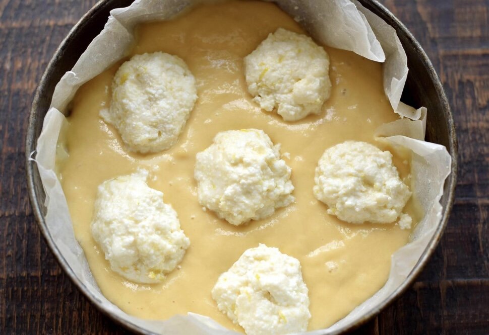 Простой рецепт очень вкусного пирога к чаю. Тесто готовится на кефирной основе достаточно быстро. Изюминкой пирога является творожная масса, которая выкладывается в тесто в виде крупных шариков. Благодаря творожным шарикам после выпечки блюдо смотрится оригинально и привлекательно. Пирог получается очень пышными, тесто мягкое, немного влажное, а сладкий творог просто идеально вписывается в нежную выпечку. ИНГРЕДИЕНТЫ Кефир-200 мл Яйца-3 шт Сахар-200 гр Мука-300 гр Творог-300 гр Растительное масло-100 мл Сода-1/2 ч,л Ванилин-1 щепотка Разрыхлитель-1 ч/л Цедра лимона-1 ч/л Сахар для начинки-3 ст/л Как приготовить В глубокую емкость всыпьте творог, добавьте одно яйцо, сахар. Из лимона счистите цедру, добавьте в начинку. Все тщательно перемешайте до однородности, не оставляя комочков творога. Затем в глубокую емкость влейте кефир. Кефир должен быть комнатной температуры, поэтому заранее достаньте его из холодильника или слегка подогрейте в микроволновке В кефир добавить соду