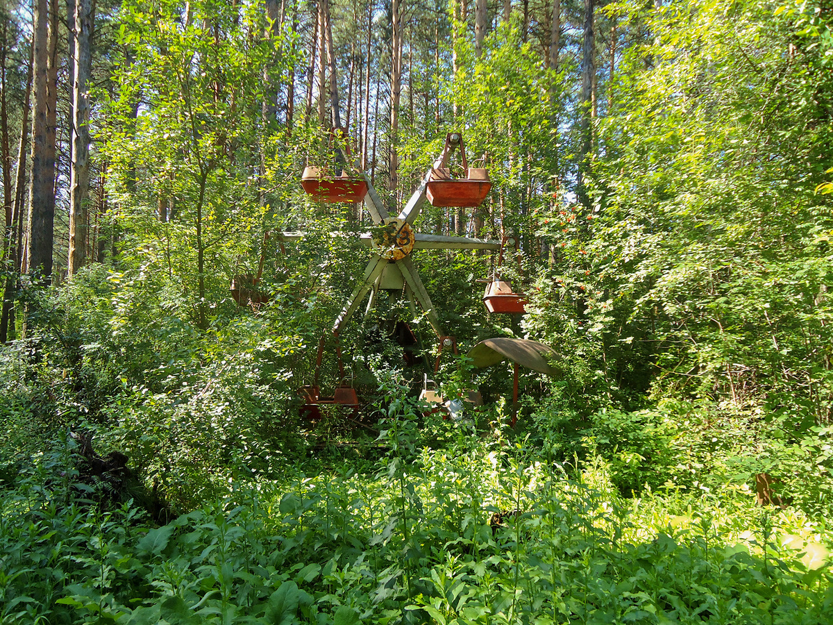 Не знаю, как часто на них катали детей, может быть, кто-то расскажет об этом в комментариях. Теперь эти карусели навечно замерли, став некой мрачной достопримечательностью этого места. Пожалуй, это один из немногих, если не единственный на моей памяти лагерь в области, в котором сохранились аттракционы…