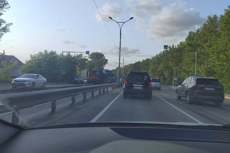 На Бердском шоссе произошло массовое ДТП с участием грузовиков и легковых авто, которое заблокировало все полосы движения в сторону Матвеевки. Согласно данным 2ГИС, авария произошла около 21:00 перед пешеходным переходом на остановке «переулок Дементьева». На фотографии, которую опубликованной очевидцем на 2ГИС, и видео из Telegram-канала «АСТ-54 Black» можно заметить, что в ДТП попало примерно 6 автомобилей. Причина аварии пока неизвестна, однако новосибирцы в комментариях считают, что виной стали «объездуны». «Ну что, успели?», — комментирует ДТП водитель на 2ГИС. В ГИБДД уточнили, что ДТП оформлено с материальным ущербом. Пострадавших в столкновении нет. Ранее мы писали подробности массового ДТП на Богдана Хмельницкого с 6 машинами. Выяснилось, что виновнику массового ДТП, 72-летнему пенсионеру, стало плохо прямо во время движения. Дмитрий Кузнецов