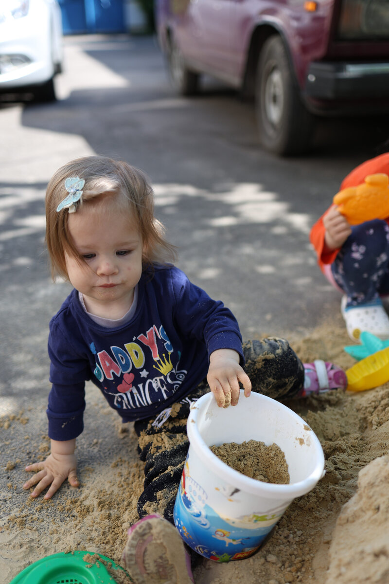 Позавтракали и сразу пошли играть в песочницу, хорошо что идти недалеко (два шага от крыльца😂)