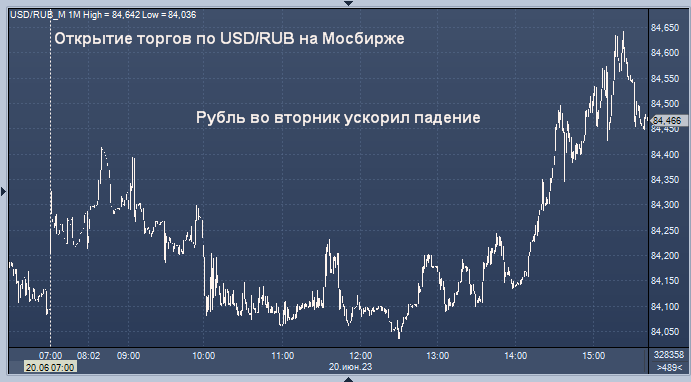Курс доллар/рубля на Мосбирже интервалами в 1 минуту