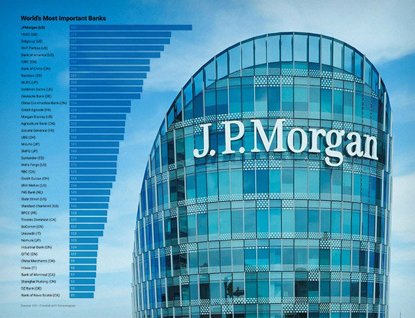 Хотя JPMorgan не является ни крупнейшим банком в мире, ни самым трансграничным банком (где он занимает шестое место после HSBC, Citigroup и трёх европейских банков), он неизменно считается самым важным. Команда, проводящая упражнение, распределяет банки по группам одинаковой важности. Под ним в одной корзине находятся HSBC, Citigroup и Bank of America, но на самом верху, в отдельной корзине, находится JPMorgan.