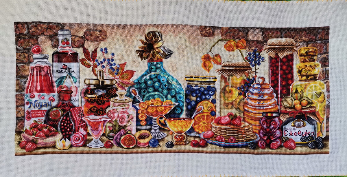 Всем привет. Как и обещала делюсь финишем от Марьи Искусницы "Вкус лета". Только добралась постирать и погладить😂 Данный набор был куплен сразу после появления новинки, в 2018 году. С вдохновением начала практически сразу, 22 апреля 2018 года. На тот момент, мне казалось, что данная работа огромная. Конечно, сейчас, окунувшись в многоцветки, я так уже не считаю. Понимала, что быстро вышить её я просто не смогу. Но вот, спустя чуть больше 5 лет, я её вышила. Радости нет предела. Я мечтала, что эта работа будет занимать особое место на кухне, но пока не обзавелась своим жилищем, оформлять пока не буду. Работа шла хорошо, в целом, не сложная, интересная, много элементов, прекрасная яркая цветовая гамма. Был момент, когда "застряла" на блинах, долго не могла вернуться к этой работе. Когда дошла уже до бирюзовый оттенков - работа полетела. Заканчивала работу с энтузиазмом. В общем, я очень рада😋 А что у вас висит на кухне или что мечтаете там разместить? Делитесь в комментариях, интерес