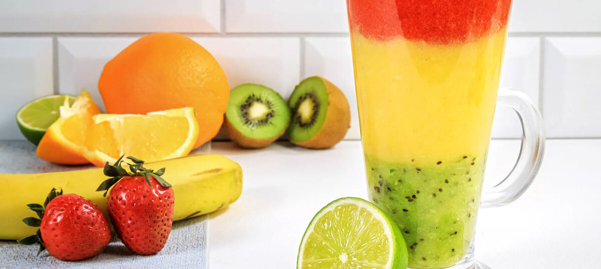 4. «Слоеный» смузи с киви, апельсином и клубникой