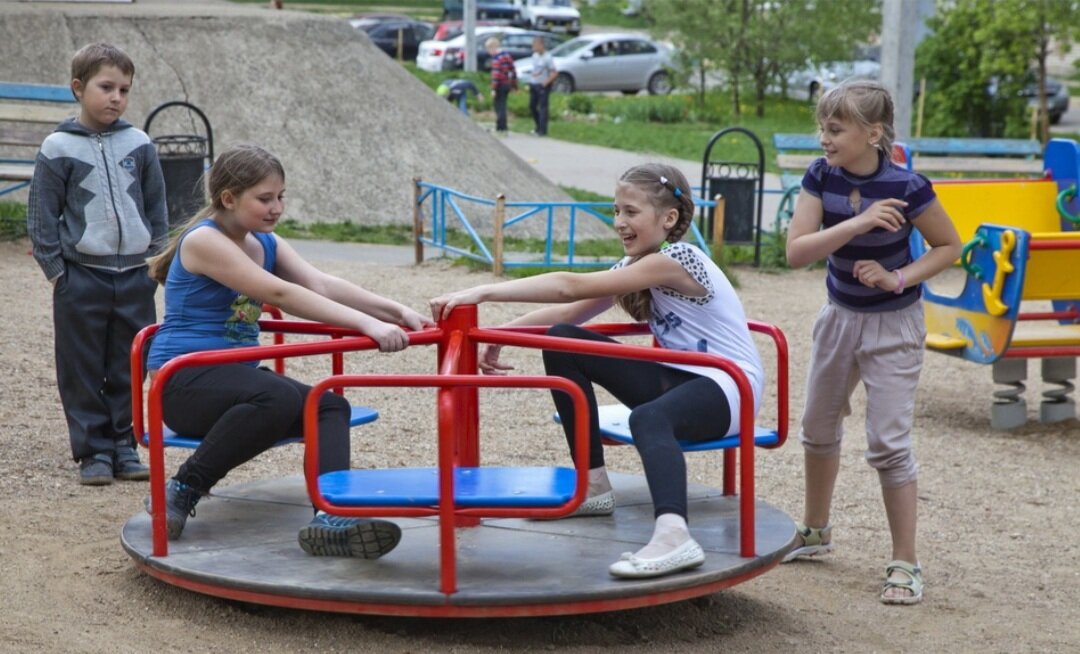 Недавно гуляли с ребенком на площадке возле дома. На карусели собрались подростки примерно от 8 до 11 лет. Одна из девочек начала ее раскручивать, чем вызвала гнев своей подруги:" Не надо крутить! Уйди!"