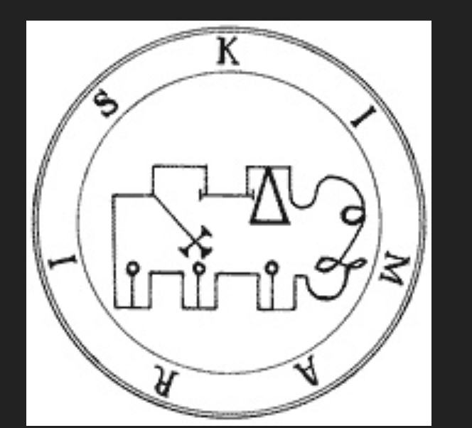 Шестьдесят шестой Демон зовется Кимарис (Kimaris), или Кимеиес (Cimeies), или Кимейес (Cimejes). Он – Могущественный, Великий, Сильный и Могучий Маркиз, появляется подобно Отважному Воину, верхом на статной черной лошади. Кимарис управляет всеми духами во всех частях Африки. Он обучает логике, грамматике и риторике; обнаруживает потерянные или скрытые вещи, а также сокровища. Великий и Могущественный Маркиз Кимарис управляет 20 Легионами Адских Духов, и вот его Печать и т.д.