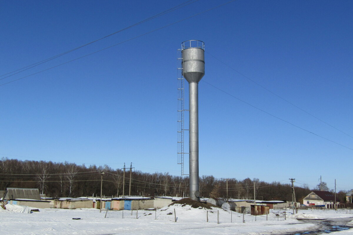 В большинстве крупных поселков и некоторых деревнях, где существовали совхозы с отапливаемыми строениями и котельными – устанавливали воднонапорные башни. Перед этим, конечно, бурили артезианские скважины на необходимую глубину.