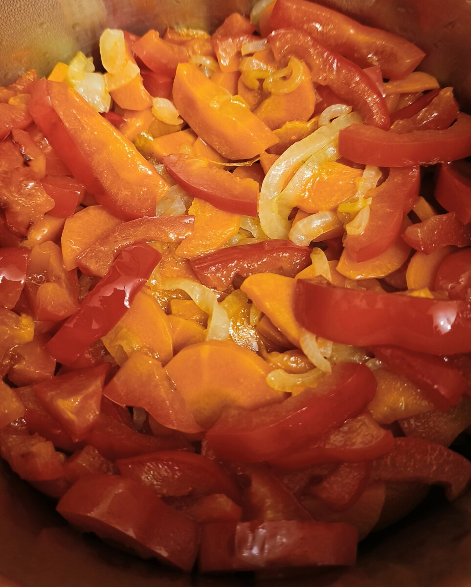 Нас в семье не много, поэтому большую порцию не готовлю, расчет продуктов исходя из этого. Ингридиенты : Кабачок 1 шт.; Баклажан 1 шт.; Морковь 2 шт.; Лук репчатый 1 шт.; Перец болгарский 1 шт.; Помидор 1 крупный; Масло подсолнечное; Зелень: кинза, укроп, петрушка, базилик; Чеснок 2-3 зубчика; Специи: соль, перец, хмели-сунели. Баклажан нарезать полукольцами толщиной примерно 1 см., Присыпать солью и оставить на пол часа. 1. Лук нарезать полукольцами и обжарить на растительном масле в сковороде. Когда лук станет прозрачным, добавить к нему нарезанную полукольцами толщиной примерно 0,5 см. морковь, закрыть крышкой и тушить примерно 20 минут. Лук и морковь переложить в кастрюлю. 2. Перец болгарский нарезать брусочками и обжарить примерно 10-15 минут. Перец должен быть мягким, но не потерять форму. Перец отправляем в кастрюлю к моркови и луку. 3. Баклажан промыть под проточной водой от соли, и обжарить на сковороде. Через 3 минуты добавить кабачок и под закрытой крышкой тушить 10-15 мину