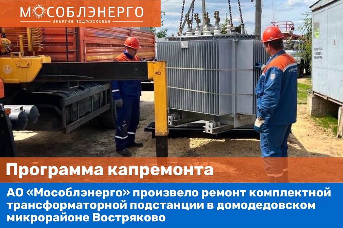 АО «Мособлэнерго» произвело ремонт комплектной трансформаторной подстанции в домодедовском микрорайоне Востряково. Силами персонала компании в КТП-492 выполнена замена трансформатора мощностью 250 кВА, у которого подходил к концу срок эксплуатации, на трансформатор ТМГ мощностью 400 кВА. Работы осуществлялись согласно плану реализации программы капитального ремонта и позволят обеспечить надежное электроснабжение жителям около 100 участков на улицах Отрадной и Степной. Всего в 2023 году в рамках данной производственной программы АО «Мособлэнерго» планирует заменить оборудование 213 трансформаторных подстанций и распределительных пунктов, отремонтировать 316 км линий электропередачи, а также расчистить от веток деревьев и кустарников 228 га охранных зон трасс воздушных линий электропередачи на территории Подмосковья.