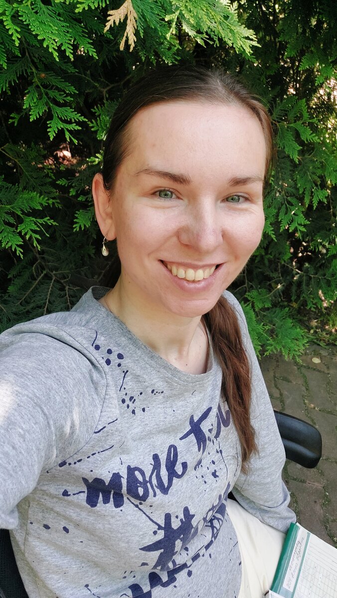 Друзья, на канале много новых подписчиков. Поэтому предлагаю познакомиться. Привет, я Лена. Мне 36 и треть жизни я передвигаюсь на инвалидной коляске. С семьёй мы разбились на машине и я получила травму позвоночника. С тех пор часто слышу слово инвалид. Но оно меня не обижает. Я не чувствую 80% тела и плохо работаю руками, пальцы парализованы. Однако, это не помешало мне однажды решиться жить одной. Я уехала от мамы в половину частного дома, который достался мне от бабушки с дедушкой. И счастливо живу там уже 5 лет. Я замужем. Мой муж здоров. Мы познакомились в интернете, когда я уже была в коляске. Есть люди, которые не верят в искренность наших чувств (особенно его). Мне жаль их. Наверное, таким людям очень часто делали больно. Так часто, что сердце обрасло защитной бронёй и очерствело. Я творческая личность. Люблю рисовать и увлекаюсь скрапбукингом (мои работы). Это изготовление изделий из бумаги. Живу я в уютном посёлке недалеко от Брянска. Очень люблю свой дом и людей, к
