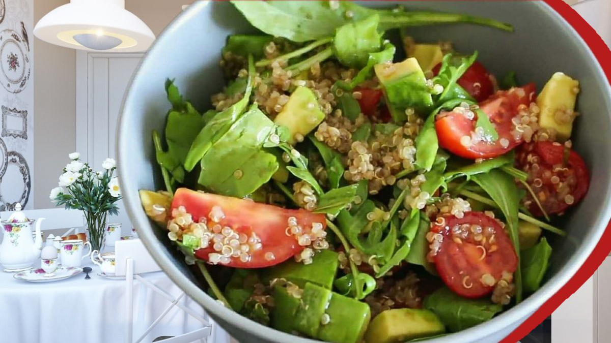 Сытный обед для активного дня: салат с киноа, курицей и овощами в соусе из меда и горчицы