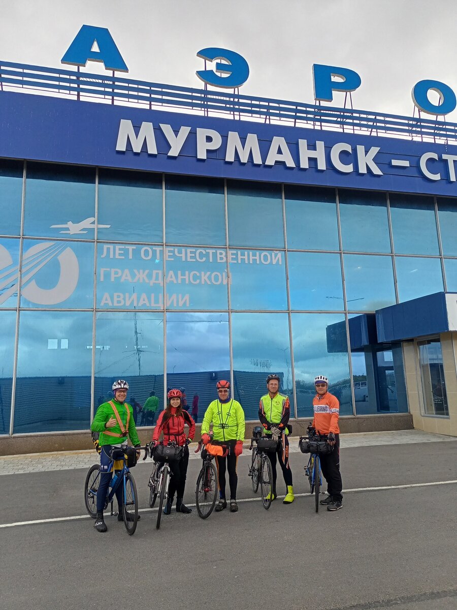 Всё-таки гениальное это изобретение - самолёт: ещё несколько часов назад в питерском офисе судорожно пытаешься сделать всё по максимуму, и вот ты уже крутишь по шоссе от мурманского аэропорта им.Николая II в компании остальных участников. Пока пасмурно, дождик накапливает силы, чтобы промочить велосипедистов, а они пока ещё бодры и полны интереса к окружающему миру. Меня же просто распирает от радости увидеть родные просторы.