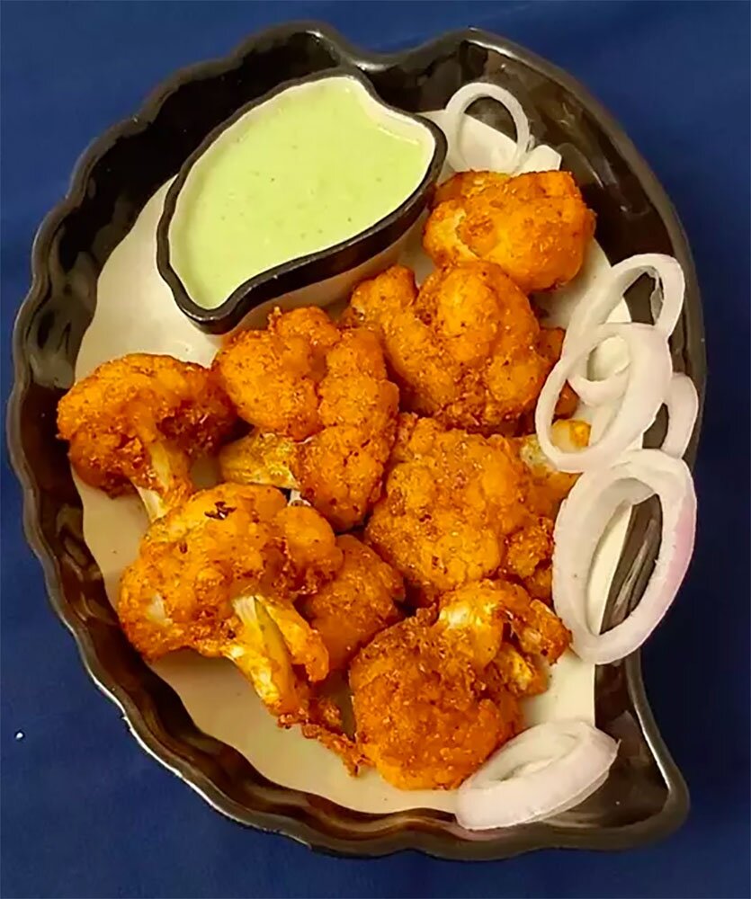 Цветная капуста тандури Ингредиенты: цветная капуста, йогурт, тандури масала, молотый перец кашмири, молотый кориандр, соль, куркума, имбирно-чесночная паста, масло для жарки, чат масала Рецепт: Тандури Гоби - это пряная индийская закуска из цветной капусты, замаринованной и обжаренной в тандури, смеси йогурта и ароматных индийских специй. Время приготовления: 30 + 30 мин.