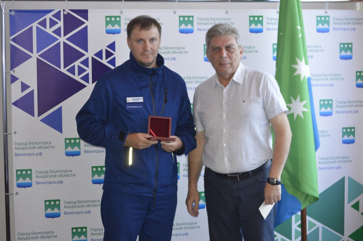 Глава Белогорска Станислав Мелюков вручил почетный знак «За заслуги перед Белогорском» замначальнику нефтепроводного управления «Белогорск» Сергею Смородникову. Встреча состоялась в кабинете главы города 21 июня. Вручить награду 9 июня на торжественном собрании «Славен город людьми», посвященном 163-й годовщине Белогорска, не представилось возможным, в связи с производственной командировкой Сергея Владимировича. - Разрешите лично вручить знак за высокий профессионализм и весомый вклад в развитие нашего города, – сказал глава Белогорска. – Уверен, что и в будущем вы продолжите свой труд на благо города. Ранее сообщалось, знак «За заслуги перед Белогорском» учрежден по инициативе главы города Станислава Мелюкова еще в 2017 году, как форма поощрения граждан за заслуги в социально-экономическом развитии Белогорска, повышении его престижа и сохранения наследия. Запись о награждении вносится в трудовую книжку и предусматривает единовременное денежное поощрение в 50 тысяч рублей из городского