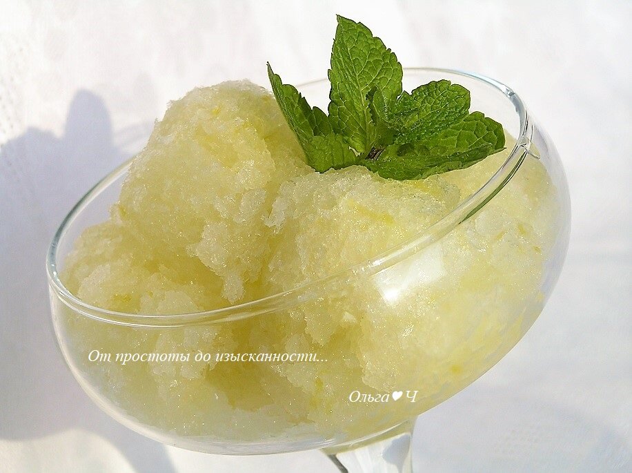 веточки мяты Приготовление: Смешайте в кастрюле цедру лимона, стакан воды и сахар. Доведите до кипения, после чего уменьшите огонь. Кипятите на медленном огне в течение 5 минут, затем остудите. Добавьте лимонный сок, сок лайма и минеральную воду, перемешайте. Перелейте в контейнер и уберите в морозилку на час-полтора, затем выньте и хорошо размешайте. Затем опять поставьте в морозилку и размешивайте примерно раз в час на протяжении четырех часов. Чем большее количество раз вы размешиваете сорбе, тем более легкой получится его консистенция. Разложите десерт по креманкам, украсьте веточкой мяты. Приятного аппетита!