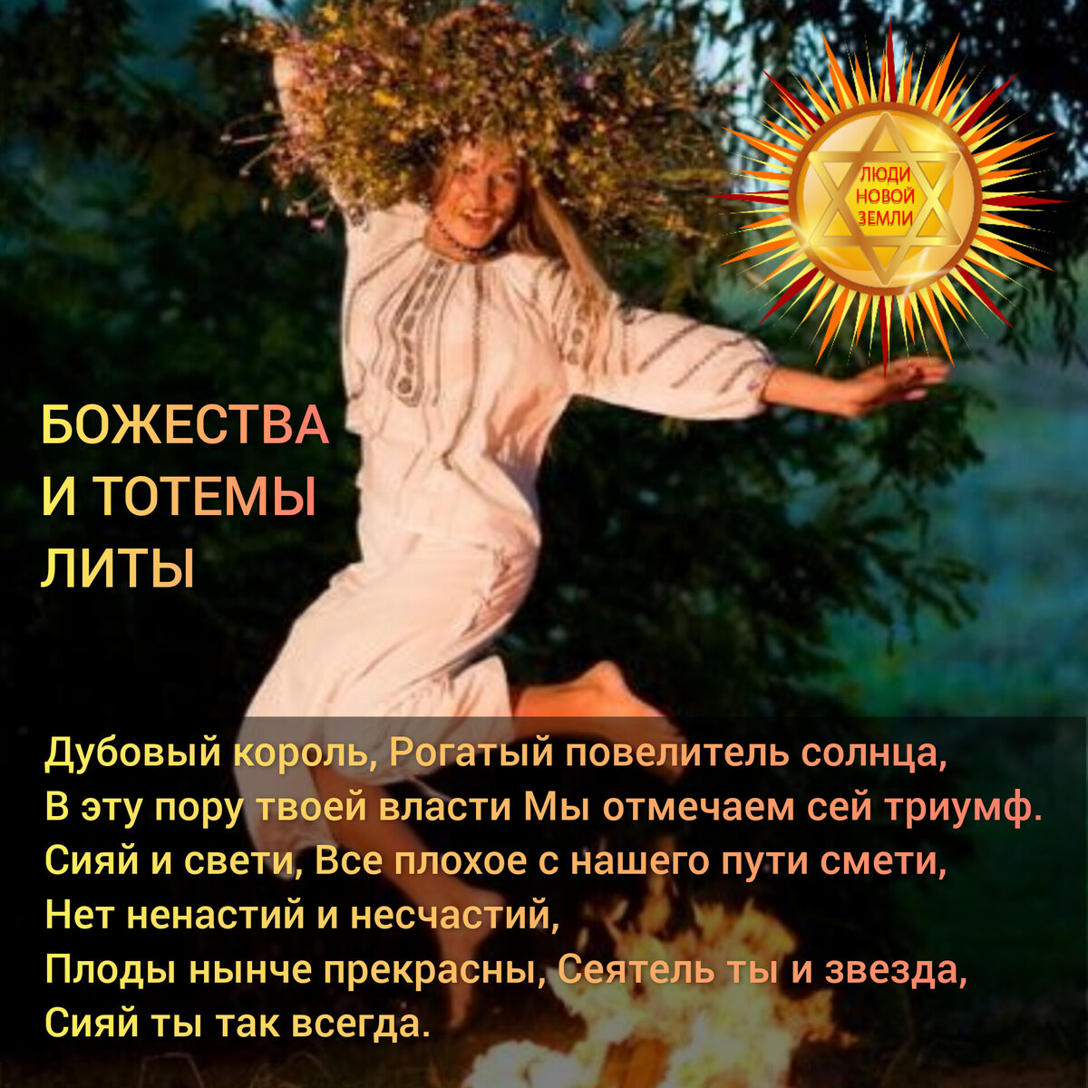 Главный бог Литы – рогоносный повелитель Солнца, сияющий и полный сил. Помимо него, виккане почитают всех солнечных богов, богов-сеятелей, богинь изобилия и огня. Призывать их в круг можно по отдельности, а можно всех сразу, именуя их просто «божества Литы». Боги лета очень веселые и любят приключения, так что, если во время медитации к вам придет что-то странное или даже безумное, не волнуйтесь – это вполне в духе божеств Литы.