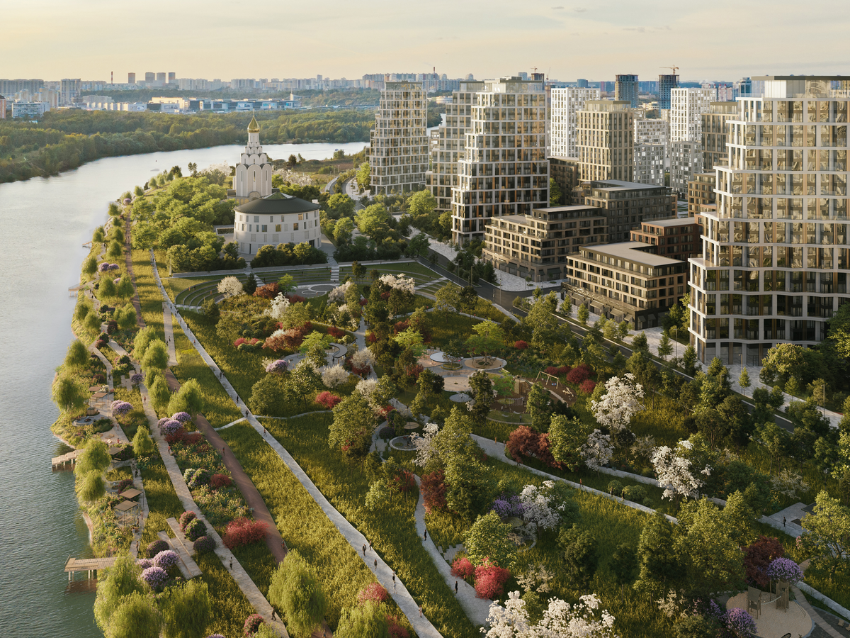 Особую ценность жилью придает вид: красивые пейзажи за окном привлекают покупателей и арендаторов. По данным компании «Метриум», 75% покупателей московских новостроек выбирают видовые лоты. Это преимущество есть и у Клубного города на реке Primavera — он расположен у самой Москвы-реки. В прибрежных зданиях все квартиры выходят окнами на воду, Экопарк на набережной и зеленый массив Москворецкого парка на противоположном берегу. Угол обзора с балконов и панорамных окон — 270 градусов.