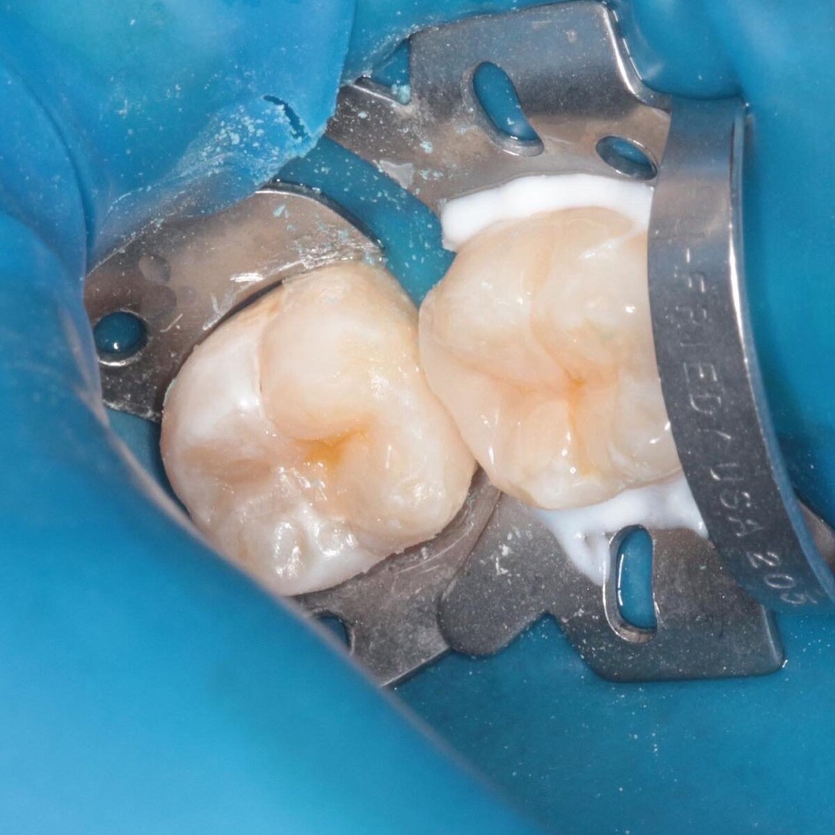 Пациент пришёл с жалобами на застревание еды и тянущие ощущения в десне. На осмотре была видна большая несуразная пломба, которой кто-то пытался буквально залепить два зуба сразу. Пломба сильно выделялась и местами отходила от зубов. Из-за дефекта пломбы остатки пищи попадали под неё и зуб начал портиться изнутри. К тому же пломба была абсолютно плоская, как заплатка, что очень вредно. На рентгене было видно, как близко к пломбе расположен нерв😲 ⠀ Стояли задачи: ▫️ликвидировать старую пломбу ▫️аккуратно удалить поражённые ткани, чтобы не повредить нерв и сохранить ему жизнь ▫️ запломбировать два зуба ⠀ Целый час терапевт скрупулёзно трудился. Мастерство доктора и своевременное обращение пациента помогли спасти зубки, но не всегда пациент может заметить что-то неладное на ранних стадиях. Чаще всего пациент приходит уже с острой болью, когда шансов спасти зуб становится катастрофически мало 🙈 Именно поэтому важно регулярно посещать стоматолога и быть внимательным к себе ‼️ ⠀