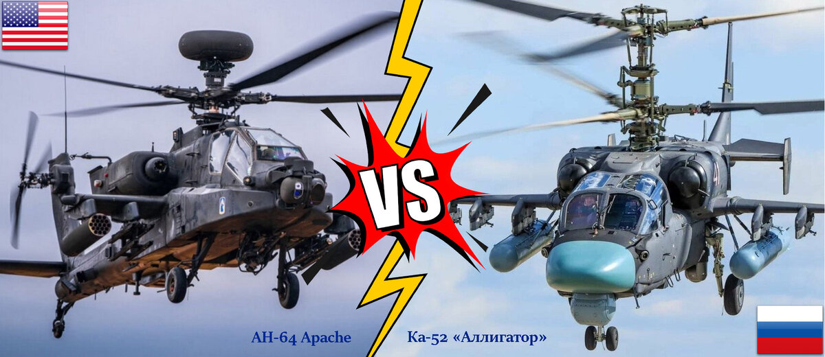 Предлагаю Вашему вниманию сравнительный поединок россиянина Ка-52 «Аллигатор» и американца Apache AH-64. Оба этих хищника в своём классе являются лучшими боевыми вертолетами в мире. Но кто же из них окажется самым лучшим? Сразу нужно отметить, что эти машины имеют несколько различных модификаций, поэтому чтобы быть объективным, сравнивать будем их новейшие модификации. У российского «Аллигатора» это Ка-52М, а у американца – Apache AH-64E. Итак, поехали! Сравнение вертолётов по наиболее важным боевым характеристикам: 1.Скорость. Максимальная (около 300 км/ч) и крейсерская (около 270 км/ч) скорость у вертолетов примерно одинаковые, здесь явного лидера нет. А вот что касается максимальной скорости подъема, то Аллигатор существенно выигрывает: 15 м/с у Аллигатора против 12,7 м/с у Apache. 2. Высота. У Apache практический потолок (около 6000 м) несколько больше, чем у Аллигатора (около 5500 м). По этому показателю Apache обходит наш вертолет. 3. Маневренность. Здесь Аллигатору нет равны