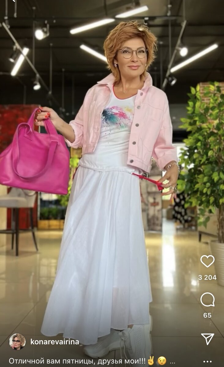 Добавляем к комплекту яркую сумку в цвете фуксия и белую обувь.