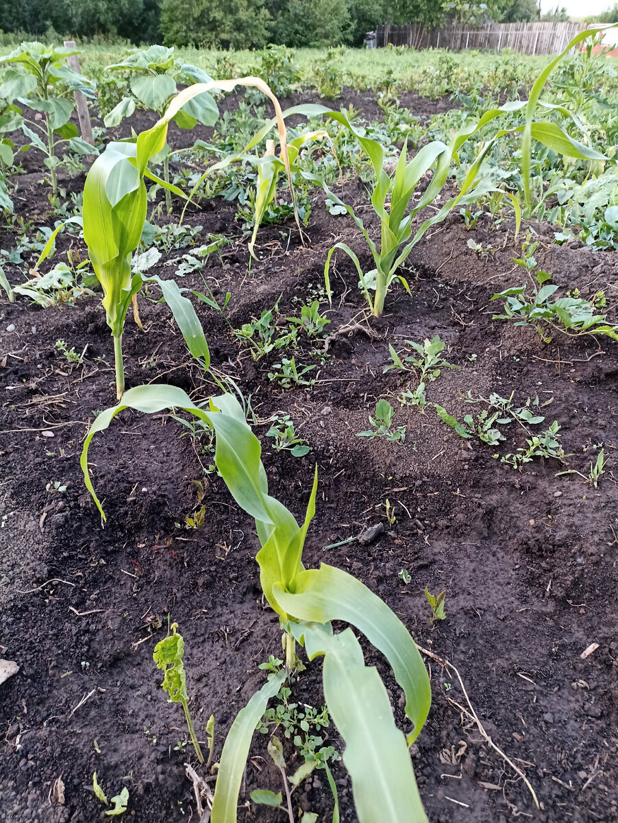 На Урале кукуруза, скажете вы!? И будете не правы!!! Она прекрасно растёт и даёт початки. Но садить её нужно рассадой. И ещё укрывать на время морозов! Нынче морозы были как никогда сильные до -10. И начались они 12 июня. Всегда раньше старые люди говорили, что нельзя ничего высаживать раньше 12 июня. С теперь в мае бывает жарко, как нынче и по этому мы всё высадили, что могли, даже все однолетние цветы, ну они и первые замёрзли. Снова о кукурузе. Мороз её чуть морозил, но она выстояла, а вот картошка сильно подмерзла.