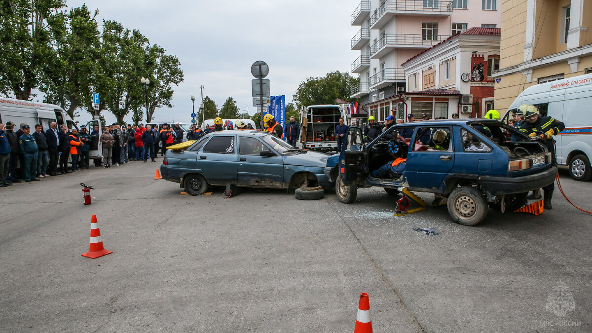 Сегодня, в рамках IV Всероссийской конференции представителей аварийно-спасательных служб и формирований Российской Федерации проведена демонстрация готовности сил и средств Единой государственной системы предупреждения и ликвидации чрезвычайных ситуаций Пермского края. По замыслу первой вводной, в результате дорожно-транспортного происшествия в автомобилях условно оказались заблокированными в бессознательном состоянии 3 человека. К месту ДТП направлена группа оперативного реагирования Пермской городской службы спасения и отделение Пермской краевой службы спасения. При помощи современных аварийно-спасательных инструментов спасатели деблокировали и извлекли условных пострадавших. Вторым этапом демонстрации стала эвакуация пяти условных пострадавших различными способами в результате пожара в 4-х этажном здании. Прибывшие к месту пожара огнеборцы спасли пострадавших при помощи трехколенной лестницы с окна 2 этажа и автолестницы с окна 4 этажа, а также развернули пневматическое прыжковое с
