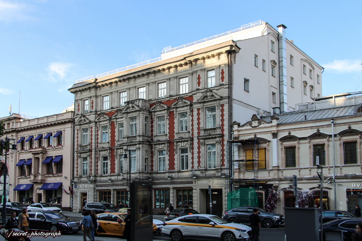 Представленные автором фото показывают нам дом 8/11 по адресу ул. Петровка, но сделаны фото с Неглинной улицы. Именно отсюда и предстаёт фасад этого дома, в настоящее время принадлежащего Центральному Банку, или Банку России, если пожелаете. В нем расположена поликлиника медицинского центра банка. Здание с того времени, на котором закончил повествование автор, «переобувалось» ещё не раз. В нем размещалась и гостиница, и «номера», и уже после войны некоторые департаменты ЦБ, и знаменитый на всю Москву магазин «Охотник». Затем в конце 90-х годов ЦБ получил в собственность фасадный дом, выходящий на Неглинную, реконструировал его с «соблюдением статуса памятника истории и архитектуры», надстроил ещё 2 этажа и соединил этими этажами с домом, выходящим на Петровку. В плане получилась этакая «восьмёрка» с двумя внутренними дворами. Арочный вход с Петровки закрыт, служит для вывоза мусора и медицинских отходов, а также служит пожарным выездом. Таким образом, адресная табличка на фасаде с Неглинной вводит многих в недоумение, поскольку не являющийся угловым дом имеет нумерацию углового.