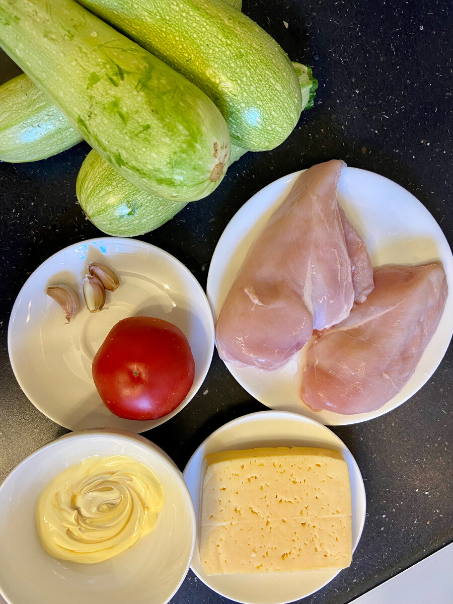 Итак, дорогие дамочки, скоро настанет сезон кабачков, давайте запечем их безумно вкусно Ингредиенты: 🖋️ Кабачки - 3/4 шт. 🖋️ Куриное филе - 2 шт. 🖋️ Сыр - 300 гр. 🖋️ Помидор - 1 шт. 🖋️ Чеснок - 3 зубчика 🖋️ Майонез 🖋️ Горчица 🖋️ Приправа- сладкая паприка, приправа для курицы Получается очень насыщенный вкус! Приятного аппетита ! Жду отзывы в комментариях 💜