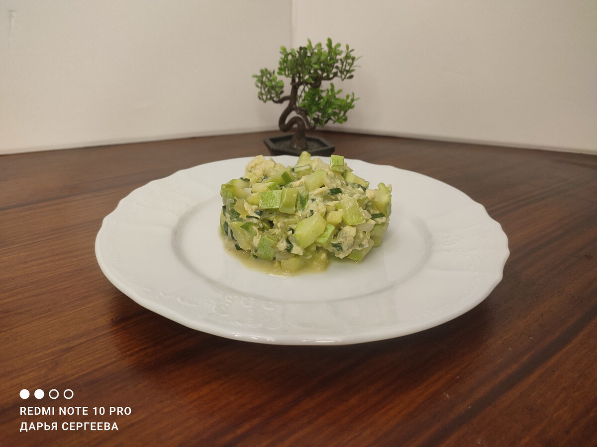 Хрустящие кабачки. Пикантный зеленый лук. И все это в облаке яичного нежного скрамбла